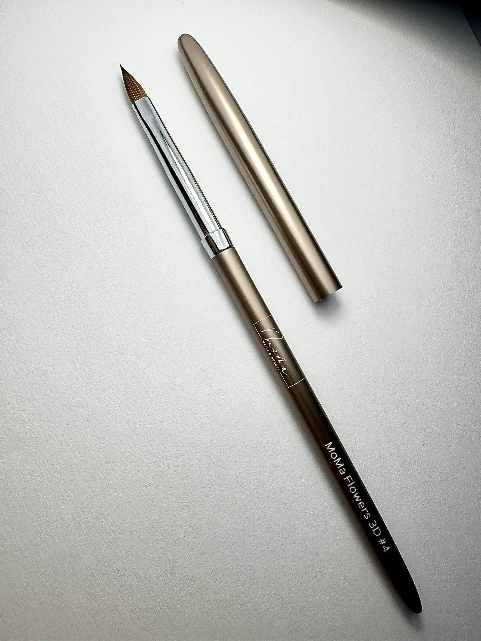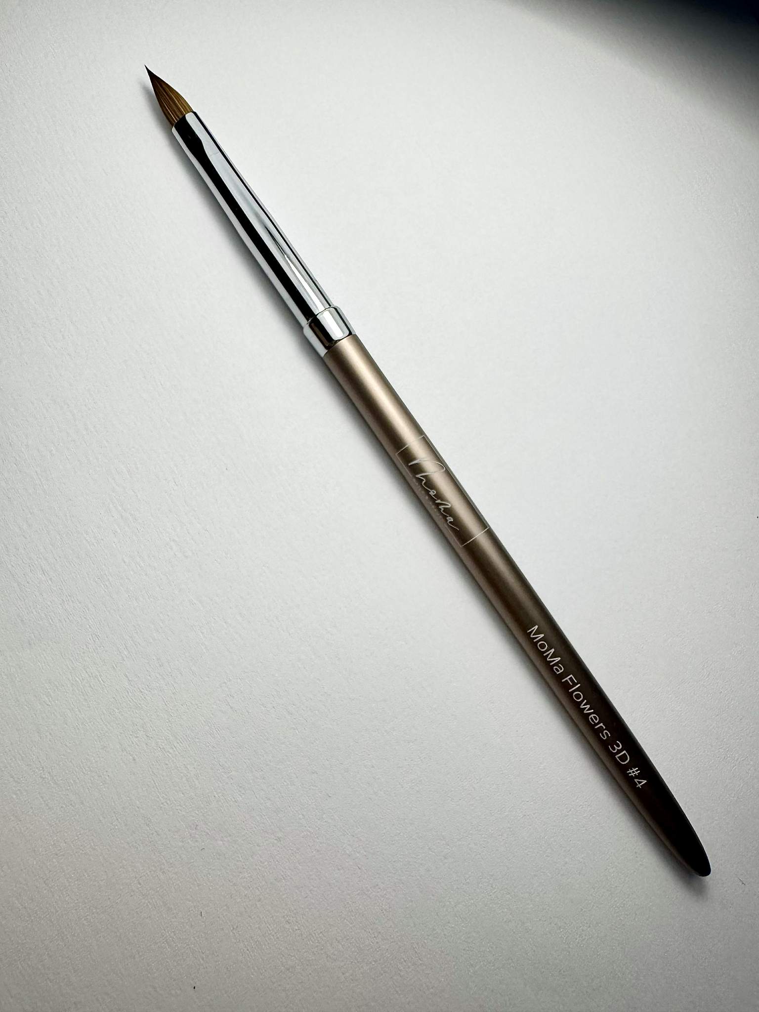 A MoMa-Flowers 3D #4 díszítő ecset kiváló minőségű, Kolinsky szőrből készült professzionális eszköz. Ez az ecset tökéletes választás a porcelán díszítő technikákhoz, különösen a gyönyörű, részletgazdag porcelán virágok készítéséhez.